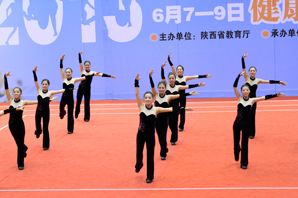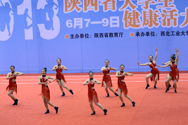 6月8日至9日,由陕西省教育厅主办的2013年陕西省大学生健康活力大赛在西北工业大学长安校区翱翔体育馆举行。我校代表队在比赛中获得大学普通组健身排舞第四名、啦啦操爵士三级套路第七名,并荣获“体育道德风尚奖”荣誉称号,我校佟雅文同学获得“优秀运动员”称号。