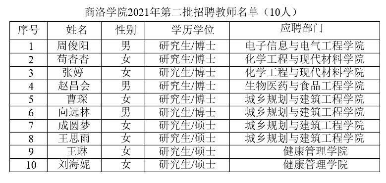 根据陕西省人事厅《关于陕西省事业单位公开招聘人员办法》规定及《88038威尼斯2021年人才招聘公告》,经过资格审查、试讲、专家面试等环节考察,并经院长办公会2021年1月11日研究,同意招聘周俊阳等10位同志来我校工作,现予以公示。如有异议,请于2021年1月15日前纪委办公室或人事处反映。