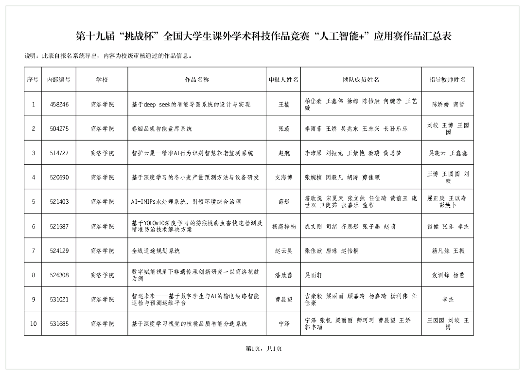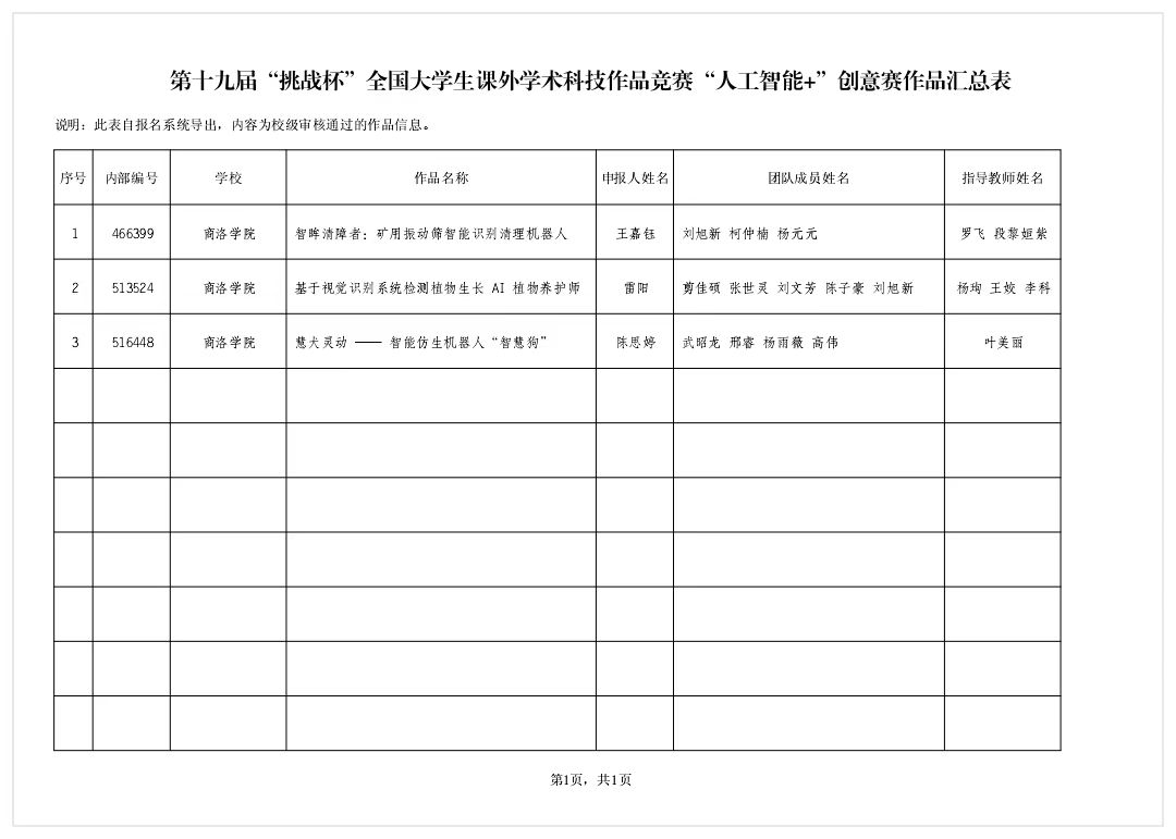 根据第十九届“挑战杯”全国大学生课外学术科技作品竞赛“人工智能+”创意赛及应用赛的有关要求,我校学生积极参加竞赛,共有13项作品通过学校审核,其中“人工智能+”创意赛3项作品,“人工智能+”应用赛10项作品。现将名单公示如下: