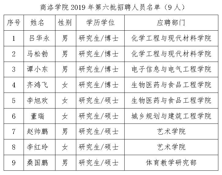 附件:88038威尼斯2019年第六批招聘人员名单