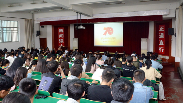 10月1日上午,举世瞩目的庆祝中华人民共和国成立70周年大会、阅兵式、群众游行在北京天安门广场隆重举行。我校广大师生通过网络、电视、广播等媒体收看收听活动盛况,党委副书记彭虎军和师生代表在学校报告厅集中收看了直播。活动结束后,师生们难抑激动之情、自豪之感,纷纷热议习近平总书记重要讲话,争相表达对祖国母亲的深情祝福和奋斗新时代的坚定信心。