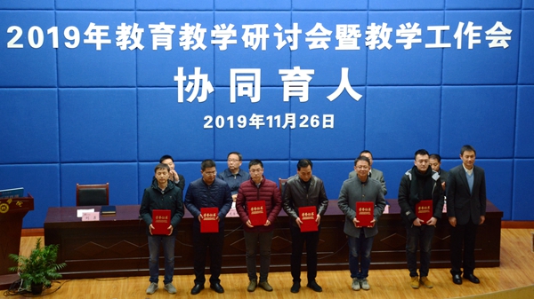 龙治刚代表学校向受到表彰的集体和个人表示祝贺,向一年来辛勤耕耘、默默奉献在教学一线的全体教师表示感谢。他指出,我校在专业建设、人才培养方面具有协同育人的良好基因,各学院、各专业的探索和实践为我们推进产学研协同育人扩宽了视野,提供了新思路、新方法。龙治刚就加快我校“一流学院”建设,提升办学实力和育人水平提出三点要求:一是要坚持立德树人,培养应用型人才。要始终将“立德”摆在第一位,将教学工作摆在中心位置,坚持育人为本、德育为先的人才培养方向,要以提升应用型本科人才培养水平推动学校办学实力与核心竞争力的整体提升。二是要深化改革,提高人才培养质量。要构建全员、全过程、全方位育人的“三全育人”大思政工作格局,要以一流本科课程和一流专业为突破口、以协同育人为发力点,全面提升人才培养水平和培养质量。三是要狠抓落实,推动一流学院建设。要从抓教师、抓教学、抓管理、抓服务等方面着手,在师德师风建设、教师能力提升、教学质量建设、教学管理服务方面狠抓落实,牢固树立“以师生为中心”的工作理念,把立德树人成效作为检验一切工作的根本标准,不断提高教育教学质量,提升科研水平,助力学校“一流学院”建设。