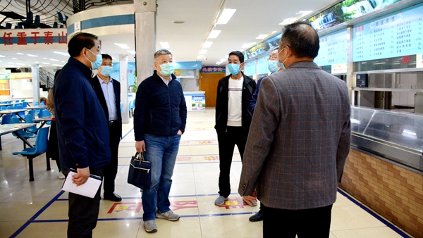 4月23日,陕西省学位委员会秘书长袁宁,省教育厅研究生处处长张和平、省结核病防治所副主任医师邓亚丽、省市场监管局餐饮处四级调研员徐新军等一行5人来我校专项督查春季开学校园安全工作。校领导龙治刚、范新会、彭虎军、王新军参加督查活动。