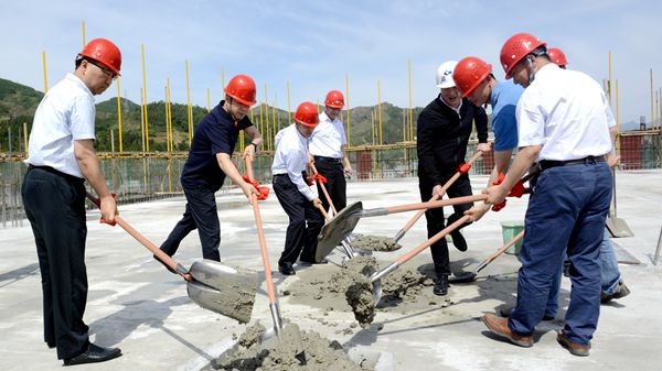 龙治刚宣布秦岭矿产资源综合利用及产教融合协同创新平台项目2号楼顺利封顶。在热烈的掌声中,校领导及施工、监理单位代表铲起混凝土为项目封顶,共同见证了本项目最后一块混凝土板的浇筑过程。