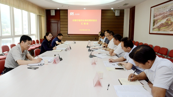 6月11日,商洛市副市长权雅宁一行来我校调研,实地考察学校发展情况,并与学校领导及相关部门负责人座谈交流。校党委书记龙治刚、校长范新会、副校长刘勇陪同调研,商洛市纪委监委驻市政府办纪检监察组组长刘建军,商洛市教育局局长胡栋梁等参加调研。