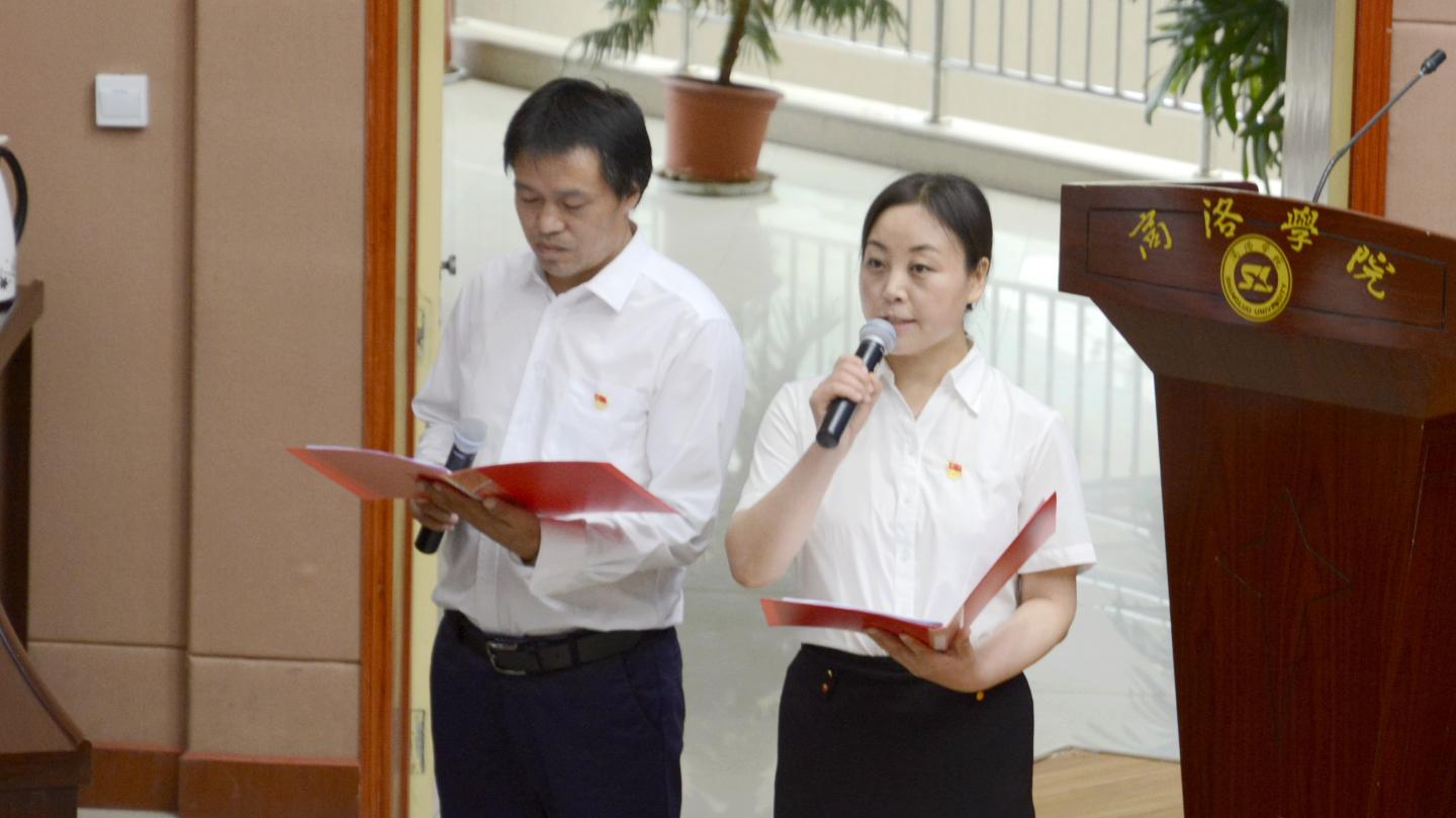 大会还穿插了文艺表演,现场气氛热烈、激情飞扬,师生党员们唱欢歌、奏乐器、诵诗篇,用饱满的热情纪念党的99岁生日,抒发热爱党、热爱祖国的浓浓情怀。“我迈着那坚定的脚步,走在你身后;为你捧出火红的青春,一路去追求;为你抛洒滚烫的热血,奉献我所有。”《把一切献给党》的现场演唱唱出了在场师生党员的爱党心声,声情并茂的诗歌朗诵《党啊,我们为您歌唱》让人心潮澎湃,笛子独奏《收割》、美声独唱《山尖尖托起太阳升》、合唱《我宣誓》《我和我的祖国》,现场高潮迭起、掌声阵阵。