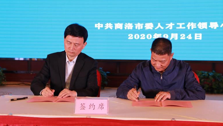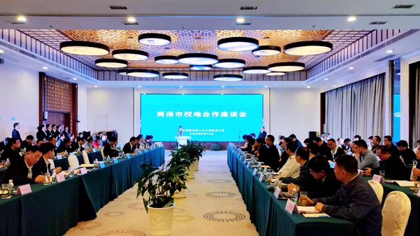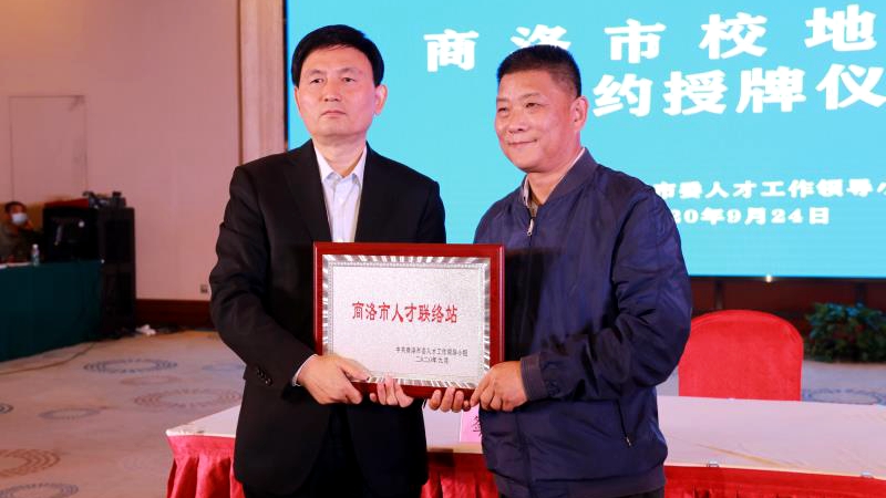 9月24日上午,商洛市校地合作座谈会暨签约授牌仪式在柞水县举行。科技部资源配置与管理司二级巡视员利斌出席会议,商洛市委书记郭永红致辞,市委副书记、市长、市委人才工作领导小组组长郑光照与我校在内的13所省内外高校签订合作协议并颁授“商洛市人才联络站”铭牌,市委常委、常务副市长、市委人才工作领导小组副组长武文罡主持会议,市委常委、市委组织部部长、市委人才工作领导小组副组长薛小毛介绍有关工作。校长范新会代表学校与商洛市签署《校地人才合作框架协议》协议并接受授牌。