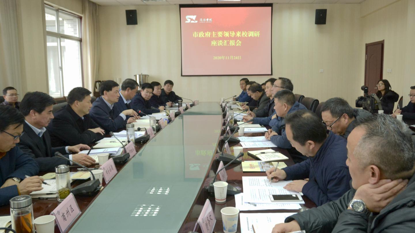范新会在座谈会上汇报了学校发展情况和未来愿景,介绍了学校近年来在培养应用型人才、服务地方发展、深化产教融合、保护青山绿水、助力民生改善、服务脱贫攻坚等方面的办学成就,就亟需市政府协助解决的几项重点问题作了简要说明。