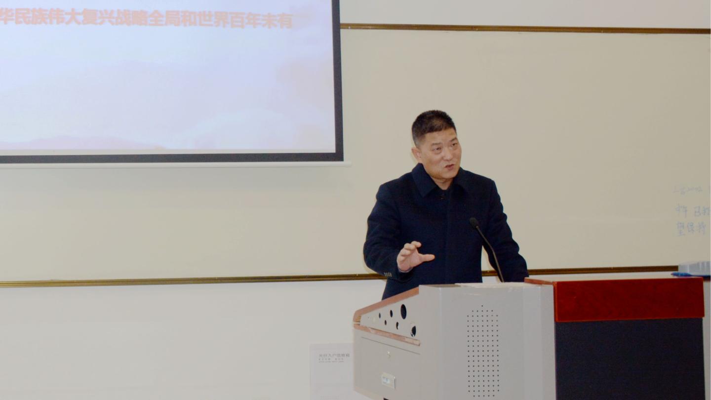 校党委副书记、校长范新会带领师生回顾了我国现代化建设的历史进程,阐述了实现现代化、实现民族复兴,是近代以来中华民族孜孜以求的目标、是中华民族的伟大梦想和历史夙愿。他指出,建成社会主义现代化强国,实现中华民族伟大复兴,是一场接力跑,我们要一棒接着一棒跑下去,每一代人都要为下一代人跑出一个好成绩。青年一代生逢其时、重任在肩,要对“国之大者”心中有数,从点滴做起,不断增长知识才干,把自己的成长进步融入党和国家事业大局之中,不负韶华,奋发图强,在夺取全面建设社会主义现代化国家新胜利、实现中华民族伟大复兴中国梦中施展青春才华、贡献青春力量。