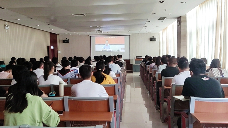 按照学校党史学习教育工作安排,6月1日下午,我校举办第十三期党员发展对象培训班。校党委书记、党史学习教育党委宣讲团团长龙治刚作了首场党史学习教育专题报告。323名学生党员发展对象通过线上线下相结合的方式听取报告。副校长郭瑾主持开班仪式。