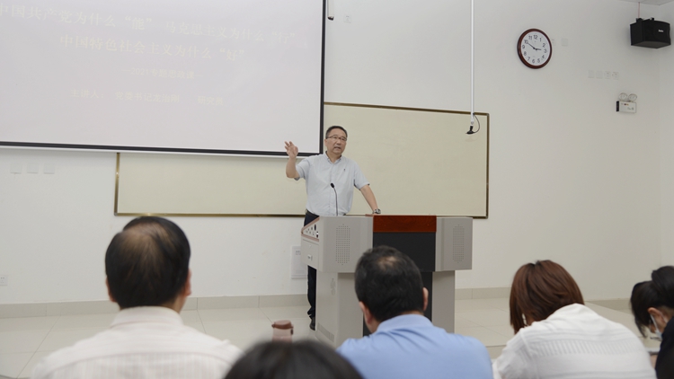 在生物学院课堂上,党委书记龙治刚以《中国共产党为什么“能”、马克思主义为什么“行”、中国特色社会主义为什么“好”》为题,从历史维度深刻阐释了百年党史的伟大和辉煌,引述《共产党宣言》等马克思主义经典文献分析了中华民族百年探索实践,阐述了马克思主义中国化的理论成果的伟大历史贡献,论证了历史和时代为什么选择了中国共产党。龙治刚要求,全体师生要深刻认识红色政权来之不易、新中国来之不易、中国特色社会主义来之不易,通过党史学习教育进一步坚定对马克思主义的信仰,对社会主义、共产主义的信念,党员干部要锤炼党性、砥砺政治品格、践履知行合一,从党的百年历史中汲取精神营养,凝聚奋进力量,以永不懈怠的精神状态和一往无前的奋斗姿态为国家富强、民族复兴、人民幸福贡献青春力量。