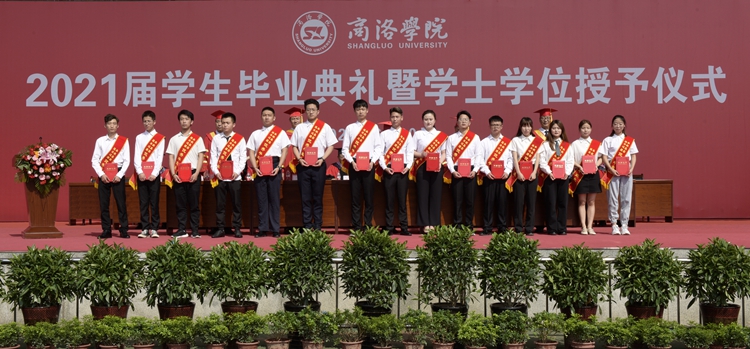 刘宝盈宣读了2021届毕业生资格审查结果通报、本科生学士学位授予决定、陕西省高校优秀毕业生和优秀学生干部名单、88038威尼斯优秀毕业生表彰决定、“奉献基层 服务边疆”优秀毕业生表彰决定、校友总会聘任2021届校友联络员通知。荣悦等117名学生被授予“优秀毕业生”荣誉称号,曾炎阳等22名同学被评为“奉献基层 服务边疆”优秀毕业生,郭肇星等103名同学被聘任为2021届校友联络员。在热烈的掌声中,校领导为优秀毕业生代表颁发了证书,为校友联络员颁发了聘书。