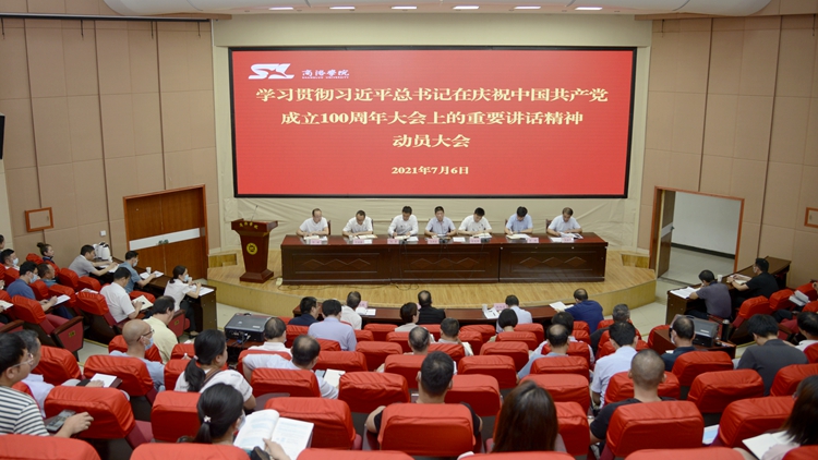 为认真学习贯彻习近平总书记在庆祝中国共产党成立100周年大会上的重要讲话精神,迅速掀起学习贯彻习近平总书记重要讲话精神的热潮,推动党史学习教育持续走实走深,7月6日,我校召开学习贯彻习近平总书记“七一”重要讲话精神动员大会。党委副书记、校长范新会作动员讲话。党委副书记彭虎军对我校学习贯彻习近平总书记“七一”重要讲话精神作了全面安排部署并提出具体要求。