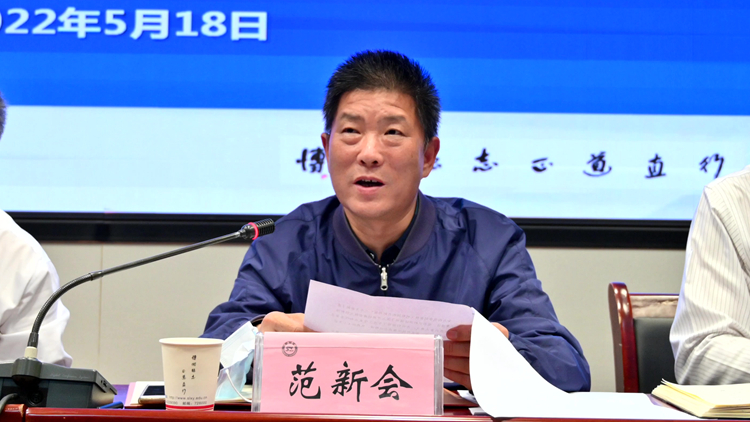 5月18日下午,我校在图书馆一楼报告厅召开2022年创建省级文明校园推进会,总结上年度省级文明校园创建工作开展情况,安排部署2022年创建工作。校领导张志昌、范新会、彭虎军、刘勇、刘宝盈、王新军出席会议。党委书记、创建省级文明校园工作领导小组组长张志昌作动员讲话,校长、创建省级文明校园工作领导小组副组长范新会主持会议。各职能部门主要负责人,二级学院(部)党、政主要负责人参加会议。