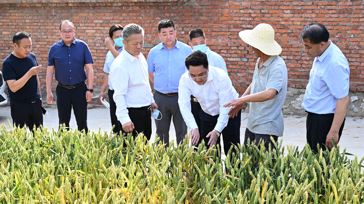 会后,张志昌与黄鹏一行实地察看了学校体温检测门使用情况、5G影院建设情况,前往小麦试验田现场看望慰问了我校育种专家、高级实验师于浩世,并进行了深入交流。