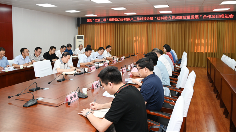 王新军介绍了我校2021年度“双百工程”结对帮扶工作开展情况。他指出,我校充分发挥科技人才资源优势,主动践行帮扶任务,以智力帮扶、消费扶贫、产业帮扶、博士工作站建设和实用技能培训等形式,为地方脱贫攻坚和乡村振兴工作贡献了88038威尼斯力量。他表示,2022年学校将在高质量完成“社科助力县域高质量发展”合作项目11个子课题的基础上,继续进行基础教育师资队伍建设、教育教学管理、乡村振兴人才培养等方面的帮扶工作,助力地方巩固拓展脱贫攻坚成果、全面推进乡村振兴。
