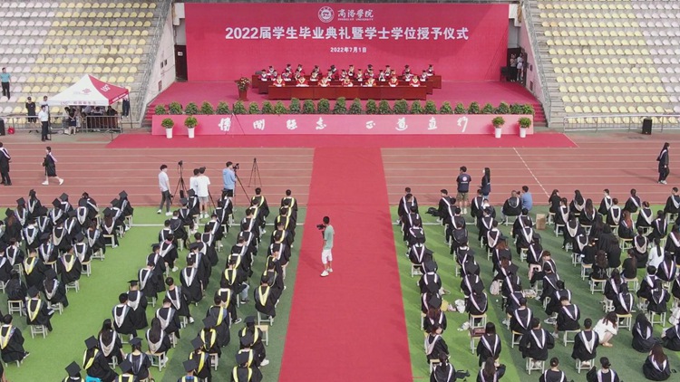7月1日上午,我校隆重举行2022届学生毕业典礼暨学士学位授予仪式。校领导张志昌、范新会、彭虎军、刘勇、刘宝盈、王新军、郭瑾出席典礼。3000余名2022届毕业生通过线上线下结合的方式,在北新街校区和丹江校区同时参与,同上最后一堂“思政大课”。师长的谆谆教诲、毕业生代表深情演唱的歌曲、“奉献基层、服务边疆”优秀毕业生现场登台领奖……这场充满思政元素的毕业典礼,激发毕业生们深怀爱国之心、砥砺报国之志、勇挑强国重任。