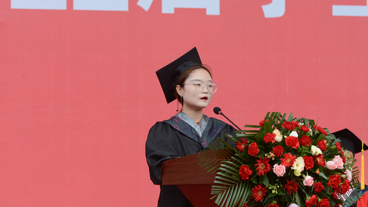 毕业生代表、化学工程与现代材料学院学生田思雨分享了自己四年来的奋斗和收获,并代表2022届毕业生向学校领导和老师致以最崇高的敬意和最衷心的感谢!她说,我们即将走向更加宽广的天地,到不同的行业和岗位中,以真才实学服务人民、以创新创造贡献国家。吾辈当广才志以求进,抟扶摇而直上,奋力谱写精彩的青春华章,做百年新梦想的引领者和逐梦人!