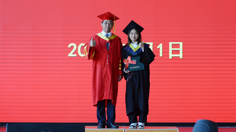 毕业典礼在校歌《正道直行做栋梁》中圆满结束,学位授予仪式分别在北新街校区体育场、图书馆二楼报告厅和丹江校区体育馆同时进行。毕业生们依次上台,由校领导范新会、彭虎军、刘宝盈、王新军为获得学士学位的毕业生正冠拨穗,颁发学位证书,并与同学们一一合影留念。