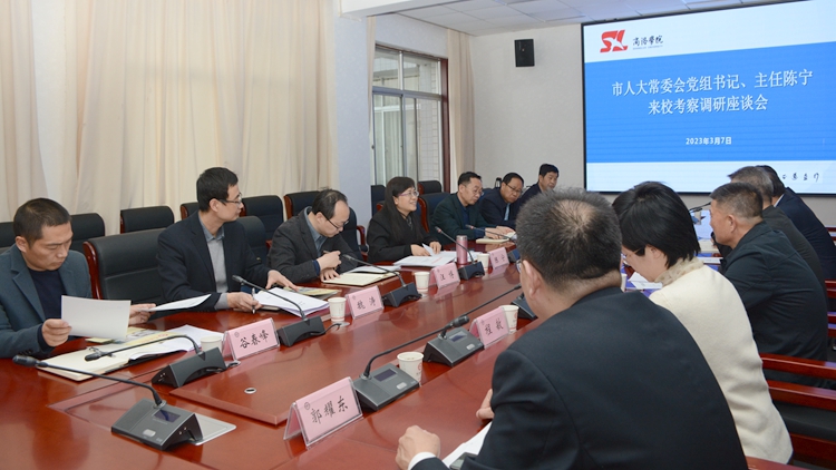 3月7日下午,商洛市人大常委会党组书记、主任陈宁一行来我校考察调研,了解学校服务商洛“中国康养之都”建设工作情况。校党委书记张志昌主持调研座谈会。校长范新会、副校长王新军参加座谈会并陪同调研。