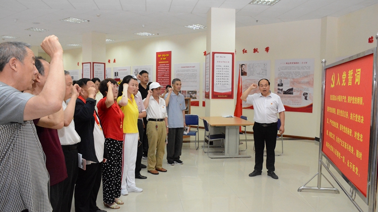 活动中,离退休老党员还参观了学校红色文化资料馆,在红色文化浸润下集体重温入党誓词。陈淑芳、王天时两位老党员代表分享了多年在党、爱党的心得体会。