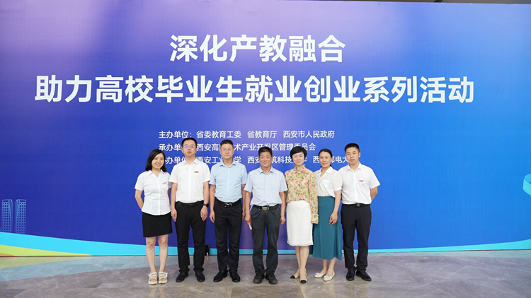 7月13日,由陕西省委教育工委、省教育厅、西安市人民政府主办,西安高新区管委会承办,西安工业大学、西安建筑科技大学、西安邮电大学协办的“陕西省深化产教融合助力高校毕业生就业创业系列活动”在西安高新区开幕。我校“双聘院士”、中国工程院院士张生勇出席开幕式,并亲临我校科技成果展台参观指导。校长范新会参加开幕式。