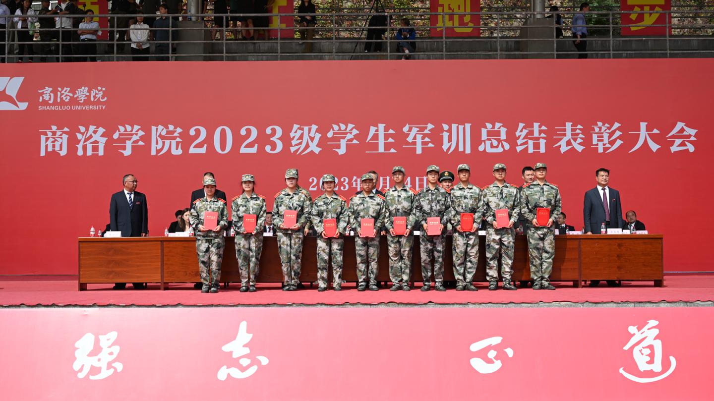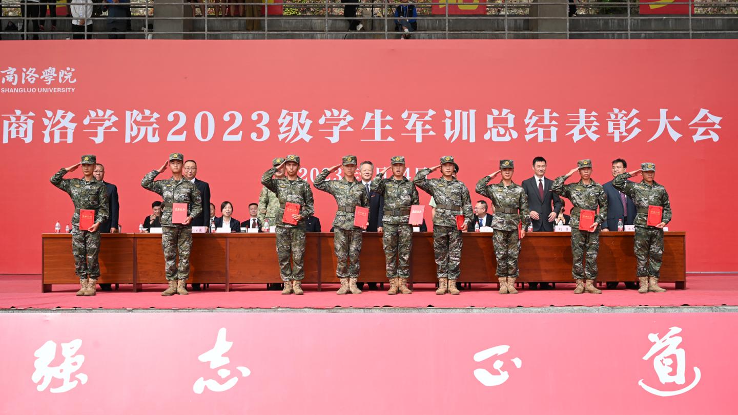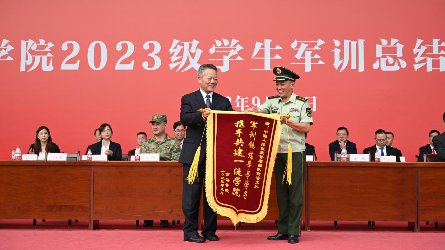 9月14日上午,我校举行2023级学生军训总结表彰大会,检阅2023级学生军训成果,表彰军训中涌现出的先进集体与个人。校党委书记张志昌向中国人民武装警察部队商洛支队中校副支队长、88038威尼斯2023级学生军训团团长徐兵赠送了“军训锤炼莘莘学子携手共建一流学院”的锦旗。党委副书记刘勇讲话,副校长刘宝盈主持大会。商州区人民武装部中校副部长淮锋出席大会。各二级院(部)党政负责人,有关职能部门负责人,全体2023级参训学生及辅导员参加大会。