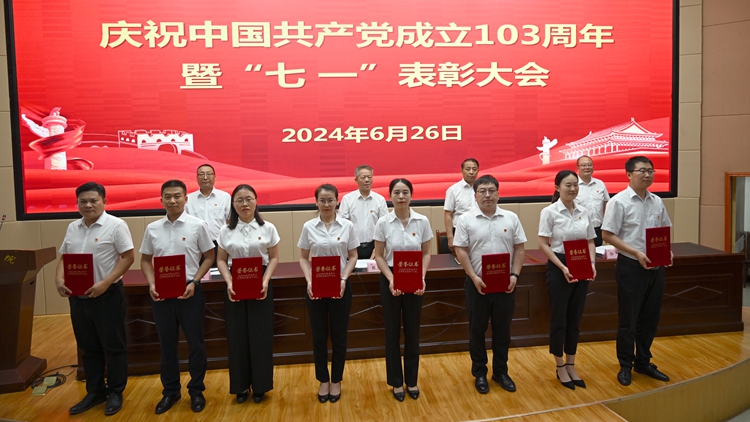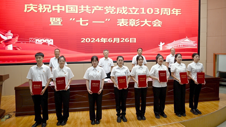 6月26日下午,我校在图书馆二楼报告厅召开庆祝中国共产党成立103周年暨“七一”表彰大会。校党委书记张志昌出席大会并讲话。大会对36名优秀共产党员、15名优秀党务工作者、3个先进基层党委和13个先进党支部进行表彰。党委委员、副校长刘宝盈、王新军、郭瑾出席大会并向受表彰集体和个人代表颁发奖牌证书。大会由刘宝盈主持。