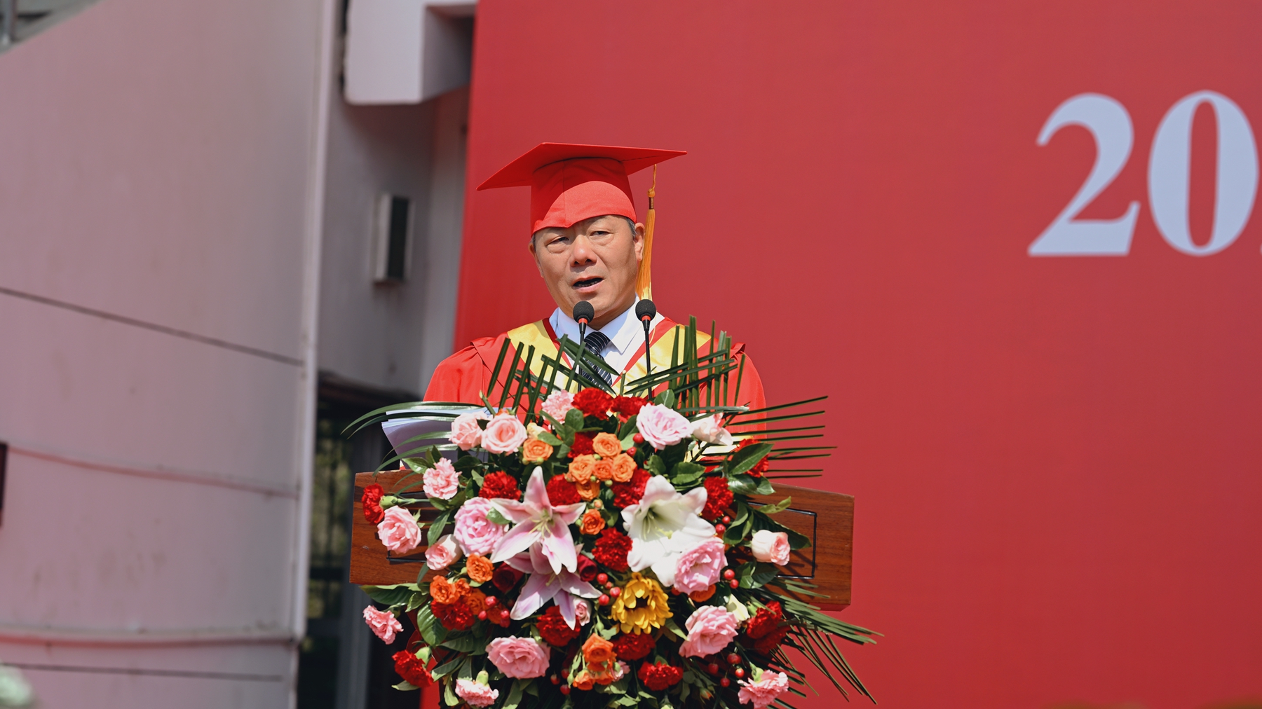 张志昌在讲话中指出,在短暂而又充实的大学生活中,同学们努力学习专业知识,踊跃投身社会实践,在实践中锤炼了本领、增长了才干。涌现出一批荣获“优秀毕业生”称号,获得大学生创新大赛国赛铜奖、省赛金奖,投身基层、奔赴边疆,携笔从戎、逐梦军营以及考研深造的优秀代表。同学们在砥砺奋进中见证了学校在软科中国大学排名取得新突破、圆满完成硕士授予单位申报工作、顺利通过教育部本科教育教学审核评估等新成就。他希望全体毕业生要牢记青年使命、保持奋斗底色,勇挑重担、冲锋在前,展现青年担当、贡献青年力量,谱写干事创业的新篇章。