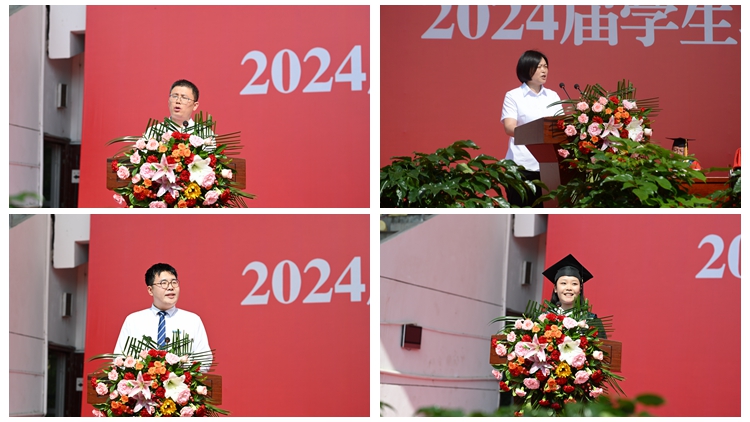 在校生代表、人文学院王林同学代表全体在校生向2024届毕业生送上最真挚的祝福。祝愿学长学姐们自信、勇敢地迈向未来,扬起风帆,航向远方,在广袤天空下展翅高飞,实现心中的梦想。同时,也希望学校事业蒸蒸日上、宏图大展。