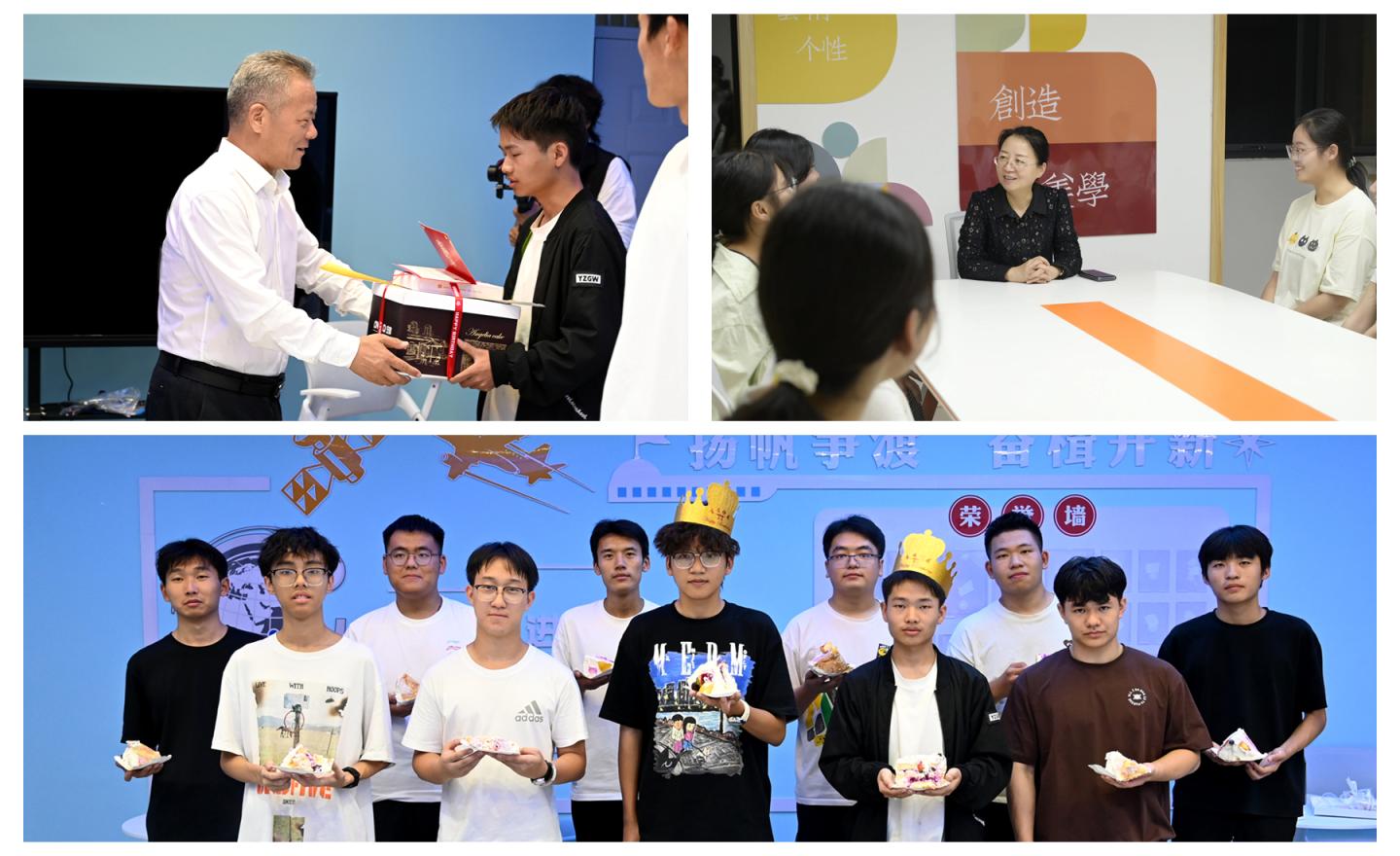 校领导张志昌、权雅宁、刘宝盈、王新军、王浩、郭瑾、程敏还分别深入学生社区和新生宿舍,为迎新期间过生日的16名2025级学生举办了简单而温馨的集体生日会。向他们送上生日祝福和生日蛋糕,倾听新生的入学感受,解答同学们关于学业与生活的困惑并给予贴心建议。校领导勉励新生,要充分把握“大学”这一重要成长阶段,早日成长为有理想、有本领、有担当的新时代青年。