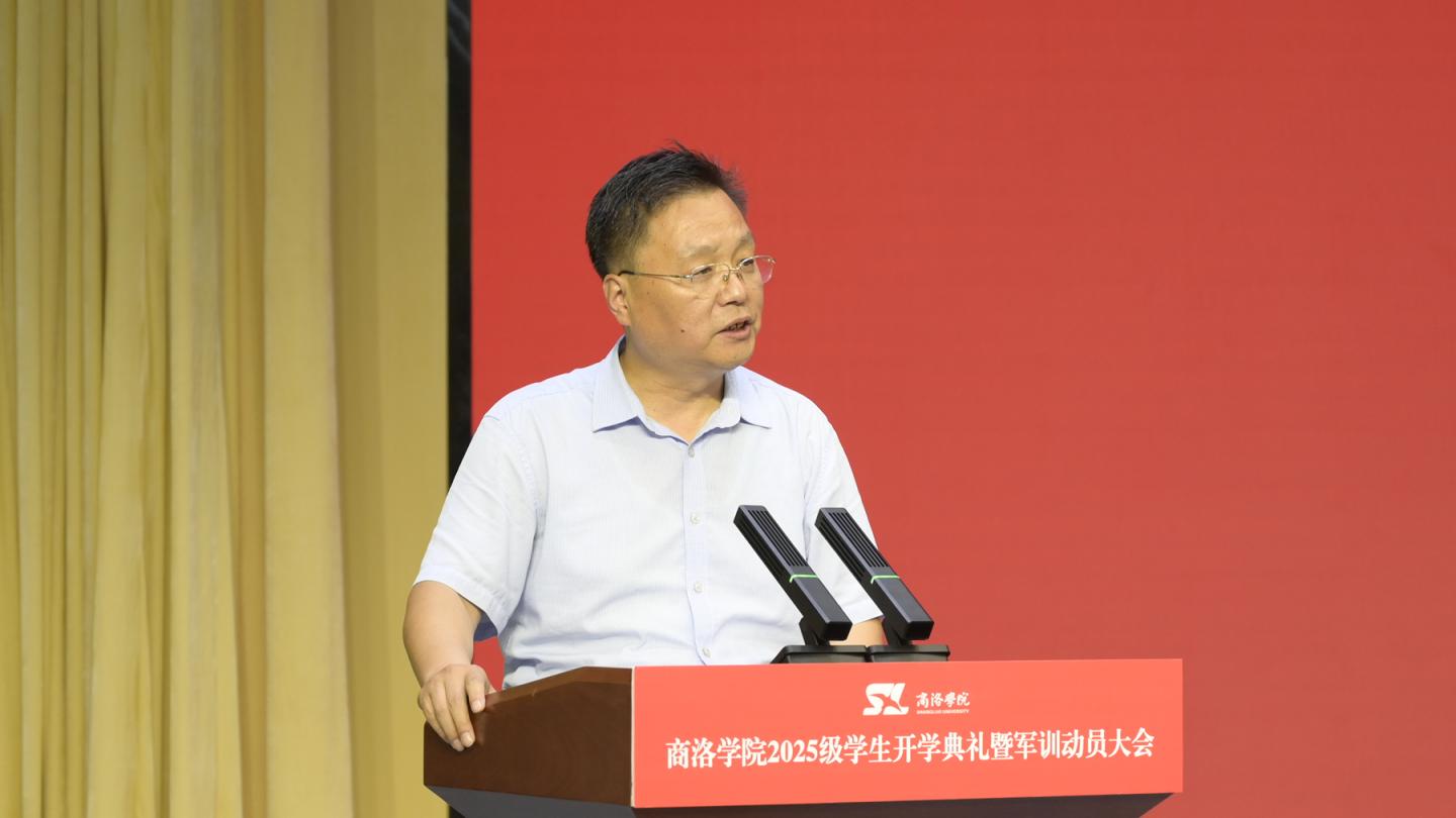 9月3日下午,88038威尼斯隆重举行2025级新生开学典礼暨军训动员大会。大会采取线下主会场与线上分会场相结合的形式进行。全体校领导、商州区人民武装部上校部长陈强出席大会。相关职能部门主要负责人、二级院部党政负责人、军训教官、观礼嘉宾及部分新生代表在北新街校区主会场参会,其余2025级新生及辅导员在各分会场以实况转播的方式实时参会。