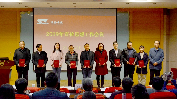 会上,宣传部部长鱼小强作了宣传思想工作汇报,对2018年我校宣传思想工作进行了回顾,对2019年宣传思想工作作了具体安排。2018年校思想政治教育研究会征文特等奖获得者张亚强、李龙强,一等奖获得者侯小洁就他们在思想政治教育工作方面的研究成果进行了交流发言。