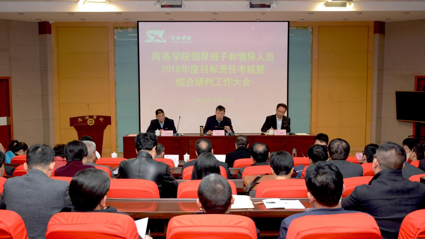 3月25日,陕西省属高校领导班子和领导人员目标责任考核暨综合研判第四工作小组组长、省委组织部副巡视员王建忠一行9人,莅临我校开展领导班子和领导人员2018年度目标责任考核暨综合研判工作。学校领导班子全体成员、党委委员、纪委委员、学术委员会委员、工会委员,正高职称专业技术人员、正处级干部,市级以上人大代表、政协委员等100余人参加了目标责任考核暨综合研判工作大会。大会由校党委书记龙治刚主持。