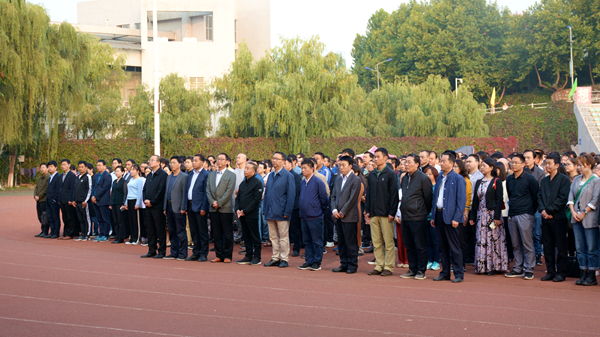 为加强对师生的爱国主义教育,9月30日,我校在体育场举行“庆祝新中国成立70周年”主题升国旗仪式。党委书记龙治刚、党委副书记、校长范新会,纪委书记王思怀,党委副书记彭虎军,副校长刘宝盈、刘勇,党委委员王新军、李超、杨存典、张向东、郭瑾,全校教职工、人文学院全体学生共计2000余人参加活动。