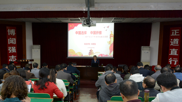 为深入开展“不忘初心、牢记使命”主题教育,深化党史、新中国史学习,引导党员不断增强守初心、担使命的思想自觉和行动自觉,10月16日,我校机关一党总支、机关二党总支,图书馆直属党支部联合举办“学习党史新中国史”专题报告会。120余名教职工党员听取报告、接受教育。