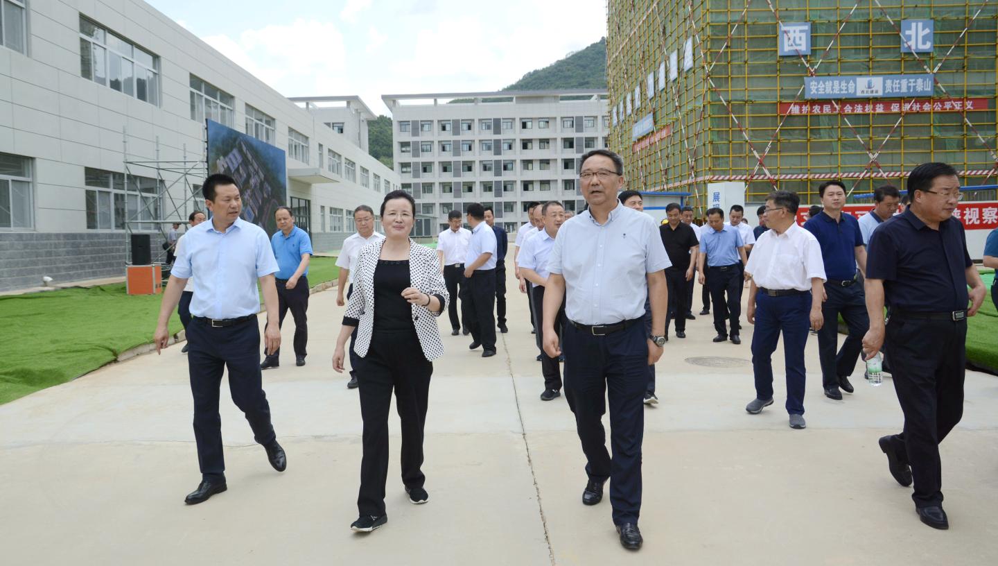 7月19日,全市重大项目拉练活动正式拉开帷幕,市委书记郭永红,市委副书记、市长郑光照,市政协主席高健,市委副书记李豫琦,市委常委武文罡、马生龙、于震、张礼进,市人大常委会副主任林录印、张盈安,副市长周秀成、权雅宁、李育江、李华、刘伟、矫增兵,市政协副主席夏启宗一行走进我校丹江校区,观摩校区建设情况。校党委书记龙治刚、校长范新会陪同观摩,副校长刘宝盈就丹江校区建设项目相关情况作了讲解。
