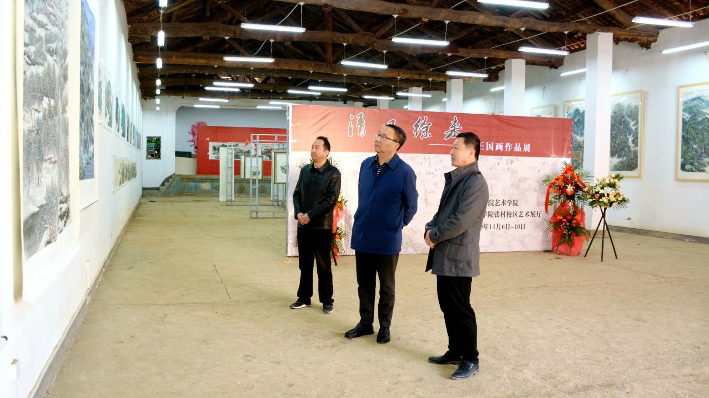 11月6日——10日,由我校艺术学院主办的“清风徐来”——袁志正国画作品展在张村校区美术馆举行。校党委书记龙治刚等领导嘉宾受邀参观作品展并合影留念。校内700余名师生、商洛文艺界60余人慕名参观了作品展。