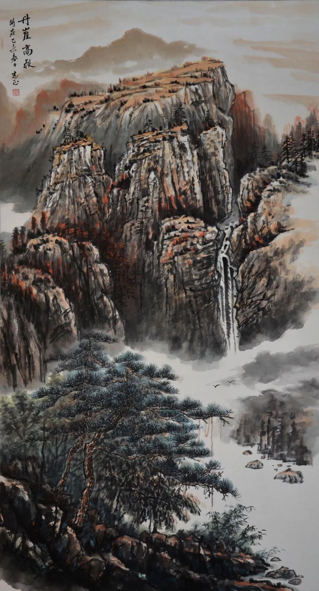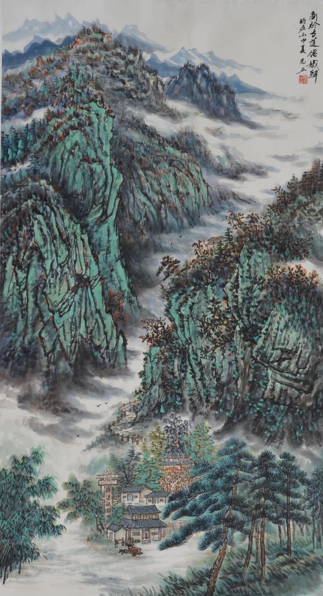 本次布展别出心裁,用原风原貌的秦岭乡村建筑元素分隔空间,场景与作品相呼应,让观者身临其境,一步一景。展出的60余件写生作品和20余件创作作品,有巨制、小品、山水、人物、书法,笔触疏密有致,笔墨生动有趣,不仅可赏“天地之大美”,亦可探“一枝一叶总关情”,既有表现大美山河的十米长卷《溪山清远图》、饱含哲理的《丹崖高秋》《山那边》等画作,也有讴歌祖国美丽山河的《华山胜景图》《晴云暖照漫川关》等作品。其中,小幅写生作品画面静雅、恬淡,充满平淡天真的气氛,其他作品多体现北派山水的堂堂君子风范,展现了大秦岭气势磅礴的风貌特质。