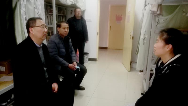 1月27日,校党委书记龙治刚、副校长王新军在党委办公室·院长办公室和后勤保障处相关负责人的陪同下,前往学生宿舍看望慰问寒假期间因疫情滞留在校的2名(石家庄籍、邢台籍)学生。