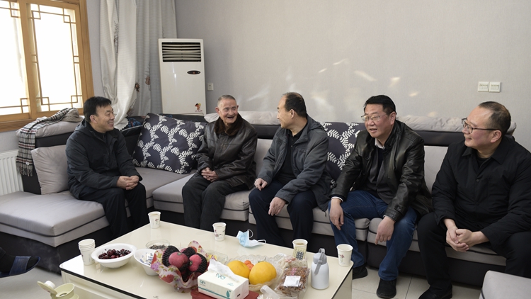 2月10日,商洛市政协主席高健、中共商洛市委直属机关工作委员会书记王浩一行来到我校,看望慰问退休老教师王明昌,为老人送上慰问金和新春祝福,并代表市委书记郭永红、市长郑光照向王明昌和家人表示诚挚的问候。校党委副书记彭虎军、副校长郭瑾等一同看望。