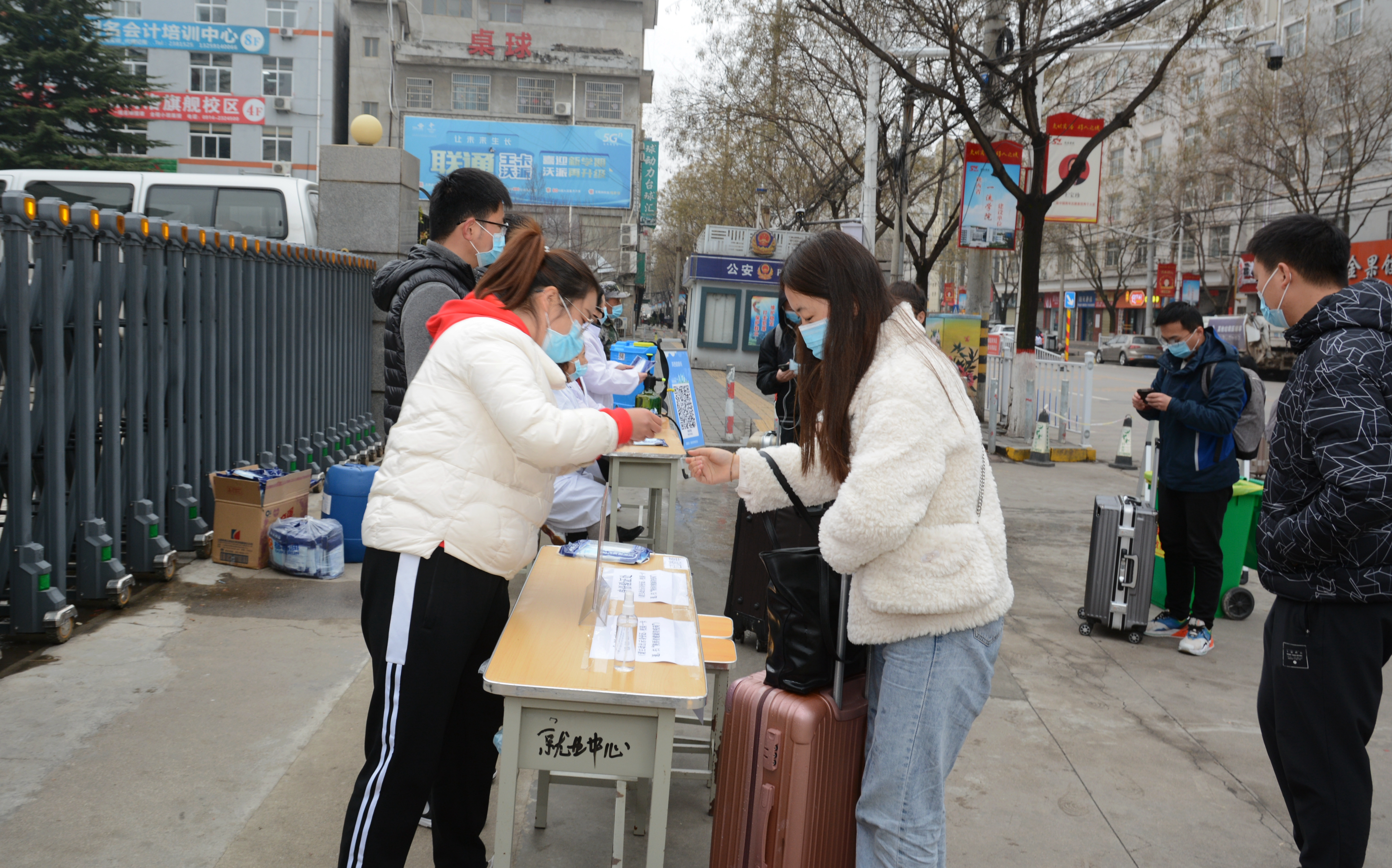 为确保全体学生平稳、有序、安全返校,学校在市火车站、汽车站分别设置了接送专车,将我校学生直送至两个校区。集中或自行乘车返校的学生在工作人员的引导下逐一进行健康码查验、行李消杀、口罩更换、身份核实、体温测量之后进入校园,径直前往所在宿舍办理入住手续,接受集中观察。2月28日上午,学校安排医护人员对外省返校学生统一进行了核酸检测。检测及观察期间,后勤保障部门和二级学院安排专人为学生定时送餐。