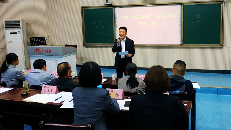 彭虎军在讲话中指出,就业指导课程是一门理论性很强的实践课程,全体教师要进一步提高思想认识,注重理论联系实际,关注社会发展,关心学生成长,加强实践积累,不断提高教学质量。他要求各二级院(部),要以此次大赛为契机,继续深化课堂教学改革,努力提升课堂教学质量及师资队伍专业化水平,推动我校就业指导课程和队伍建设取得实效,促进我校毕业生高质量就业。