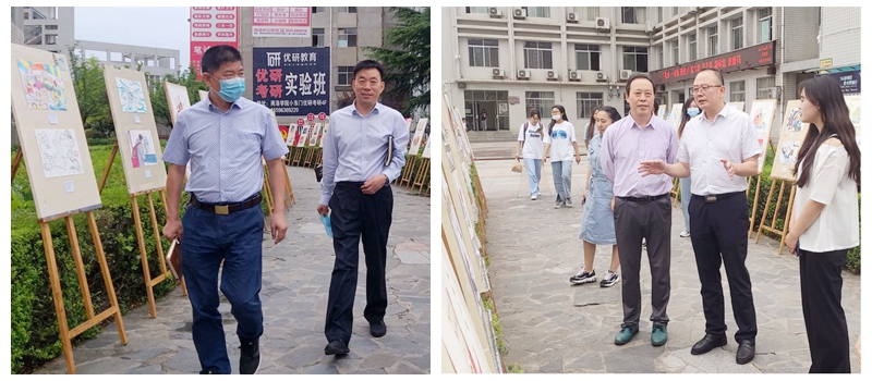 为推动党史学深学活学实,探索用“艺术+党史”的方式引导师生颂党恩、听党话、跟党走,6月17日-18日,艺术学院党总支举办了“忆百年党史、绘千万英雄、展中国精神”专题漫画创作展。校长范新会、党委副书记彭虎军、副校长郭瑾莅临展览现场并作指导,艺术学院负责人及1000余名师生观看了展览。