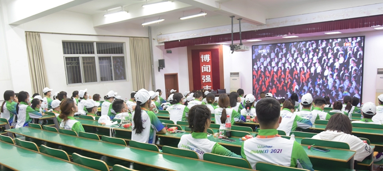 9月15日晚8时,中华人民共和国第十四届运动会在西安奥体中心体育场盛大开幕。中共中央总书记、国家主席、中央军委主席习近平出席开幕式并宣布运动会开幕。为进一步鼓舞士气,弘扬志愿服务精神,确保我校十四运志愿服务工作顺利开展,校团委组织我校十四运全体志愿者观看了十四运开幕式盛况,为陕西自豪,为家乡喝彩。