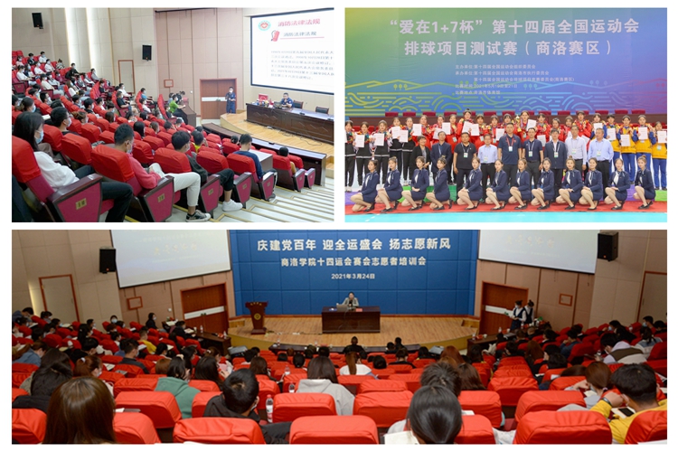 学校高度重视十四运会志愿服务工作,于2020年9月20日在我校启动志愿者招募工作,开展了志愿者甄选考试,选拔出了一批谈吐大方得体,沉着冷静、从容不迫的十四运会志愿服务者。为切实提高十四运会志愿者的基本素养和专业知识,今年,十四运商洛市执委会志愿服务部先后来我校开展了志愿服务专业知识系列培训,在商洛市体育馆举办了测试赛,消防大队商洛支队还来我校对志愿者进行了消防知识培训,我校全体志愿者积极参加了培训,并圆满完成了测试赛各项志愿服务工作,为十四运会各项工作顺利开展奠定了良好的基础。为严格落实疫情防控相关措施,全体志愿者还统一进行了新冠疫苗接种,并于赛前提前返校进行隔离与核酸检测,为十四运会志愿服务做好充分的准备。