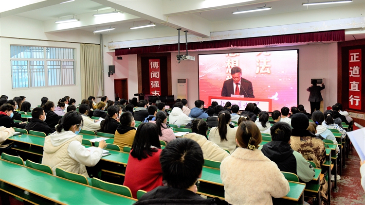 12月4日是“国家宪法日”。我校组织师生收看和同步参与国家宪法日“宪法晨读”活动,引导师生自觉尊崇宪法、学习宪法、遵守宪法、维护宪法、运用宪法。校宣传部、学工部、团委相关负责人,各二级学院师生代表共90余人参加活动。
