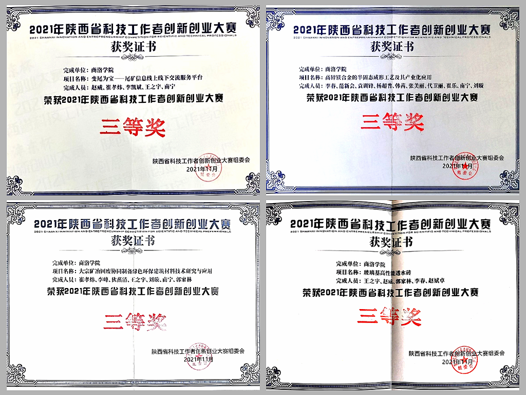 11月25日-26日,“秦创原•沣东杯”陕西省科技工作者创新创业大赛决赛路演答辩在西安举办,参赛项目团队从技术原理、应用前景、商业模式、发展规划与财务风险等方面作了汇报并接受专家质疑。经过激烈角逐,我校化材学院教师崔孝炜主持申报的《矿冶固废协同耦合制备绿色环保建筑材料关键技术研究与应用》、教师李春主持申报的《高锌镁合金的半固态成形工艺及其产业化应用》、教师赵威主持申报的《变尾为宝—尾矿信息线上线下交流服务平台》,及教师王之宇主持申报的《玻璃基高性能透水砖》4个项目均获三等奖。