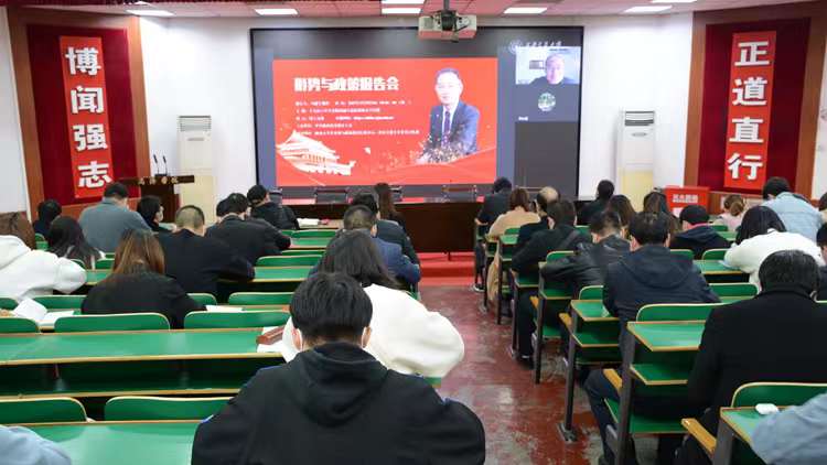 为深入贯彻落实党的十九届六中全会精神并将全会精神准确融入思政课,3月29日下午,陕西省委教育工委举办形势与政策高端视频报告会,邀请中国人民大学马克思主义学院二级教授、博士生导师刘建军,为全省高校师生作题为“十九届六中全会精神融入思政课的几个问题”的专题报告。我校组织部、宣传部、统战部、学工部、马克思主义学院相关负责人,全体思政课教师、辅导员和马克思主义学院学生代表通过在线直播集中听取报告。