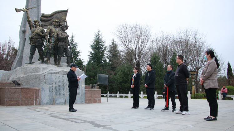 梨花风起正清明,万条千缕绿相迎。为缅怀革命先烈、回顾党史光辉历程、利用红色资源开展革命传统教育传承红色基因、推进党史学习教育走深走实,3月29日下午,在支部书记付军昌同志的带领下,工会·信息化建设与管理处党支部党员们带着满腔的敬意,来到商洛市烈士陵园和红军广场开展清明节烈士祭扫暨“缅怀先烈、铭记党史、坚定初心”主题党日活动。